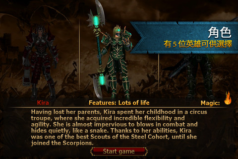 -5个不同的英雄,每个都有独特的技能、背景和武器