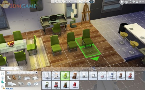 它的强大还在于可以连续复制各种物件,比如用吸管点选图中的绿色椅子后,按住Shift键再点击地面,可以连续的复制出多把一样的椅子来。
