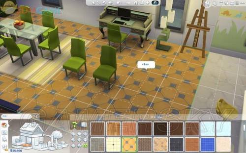 如图,用吸管点选餐厅的地板,在屏幕下方出现地板的各种材质,选择一种满意的地板,按住Shift可以预览铺设的效果,再点击一下鼠标即完成铺设。