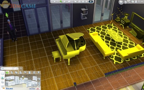 (2)吸管工具:很强大的工具,它和Photoshop中的吸管工具相仿,用它点击房屋中的任意物品,便可复制出来相同的物件来,放置到房间中会扣除其价值的金钱。这样可以复制任意物品,包括沙发、画架、吧台等等。它还能够吸取 地砖或墙壁的材质和图案,然后去用相同的材料去铺设到地板上,粘贴到墙壁上。